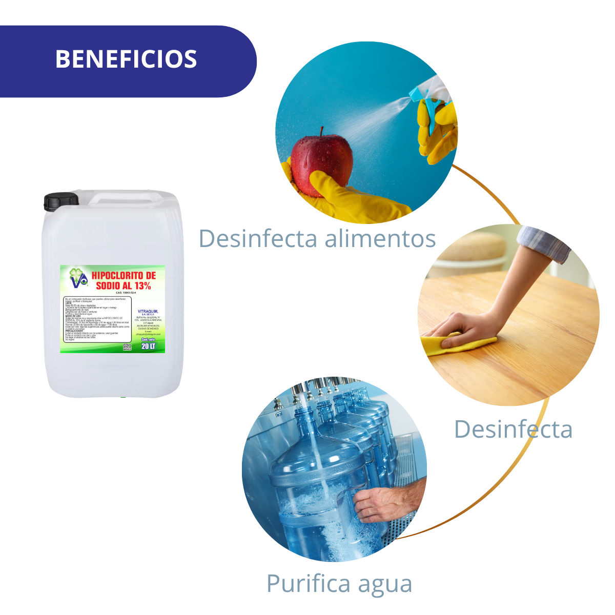 Es un compuesto multiusos que puedes utilizar para desinfectar, limpiar, purificar o blanquear.