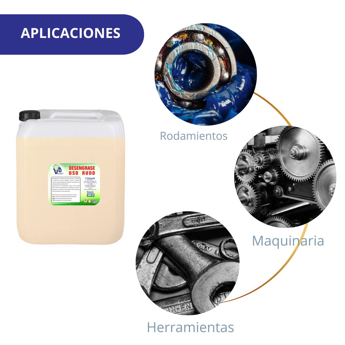 Desengrase de naturaleza alcalina, ideal para la limpieza de maquinaria, piezas metálicas, motores, cadenas, cualquier superficie metálica o partes que requieran de un desengrasante altamente efectivo.