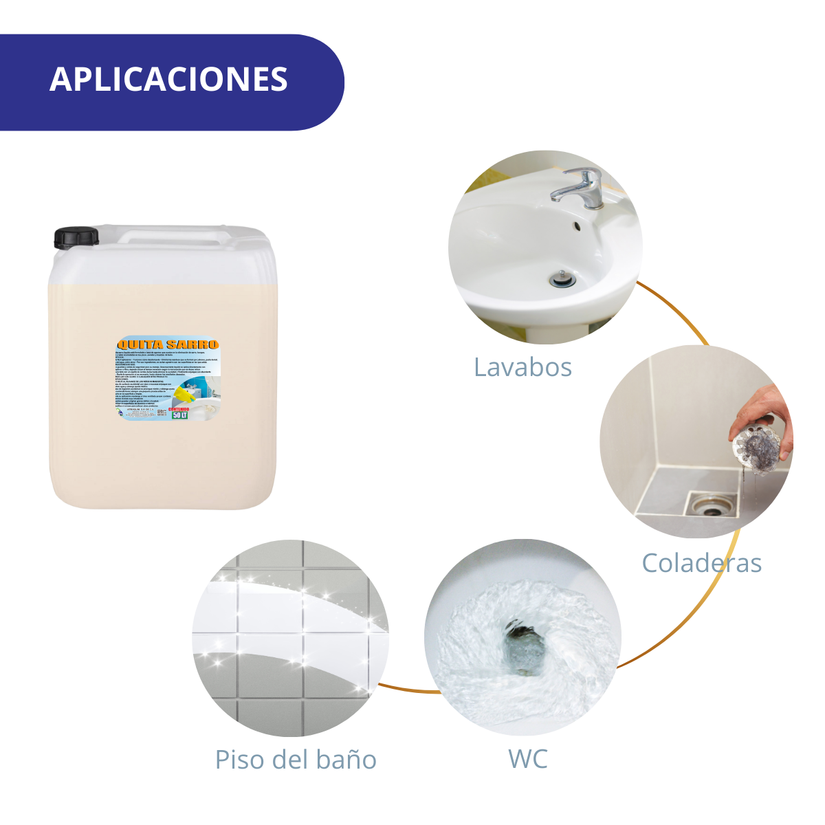 Utilice guantes y lentes de seguridad para su manejo. Quita sarro líquido se aplica directamente con un aspersor o fibra, dejando actuar el tiempo necesario según la incrustación que se desee retirar. Después talle con un cepillo de cerdas duras hasta eliminar la suciedad y finalmente enjuague con abundante agua.