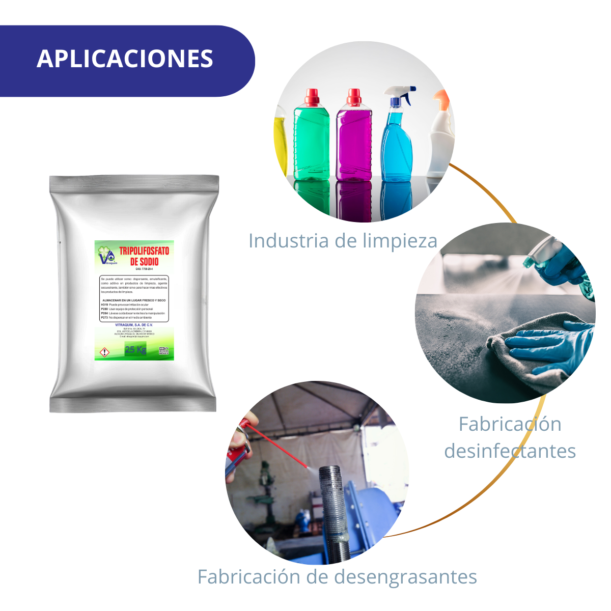 Se puede usar en la formulación para fabricar: desengrases de todo tipo, desinfectantes, diversas especialidades químicas, productos para el cuidado personal, también sirve como regulador de pH.