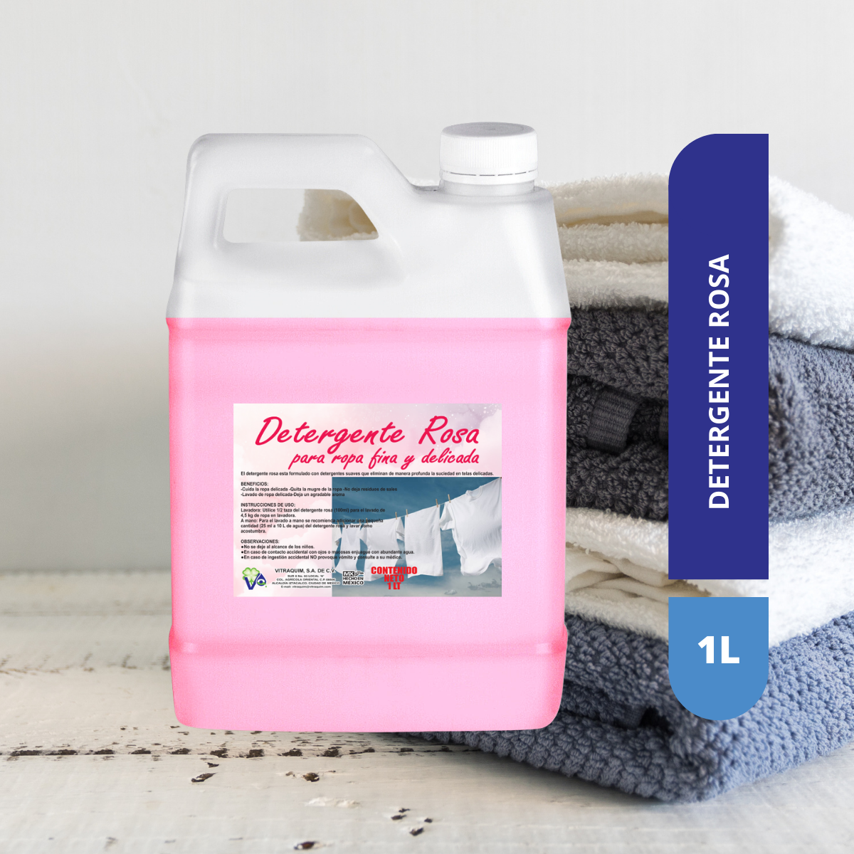 A mano: Para el lavado a mano se recomienda adicionar una pequeña cantidad (25 ml a 10 L de agua) del detergente rosa y lavar como acostumbra.