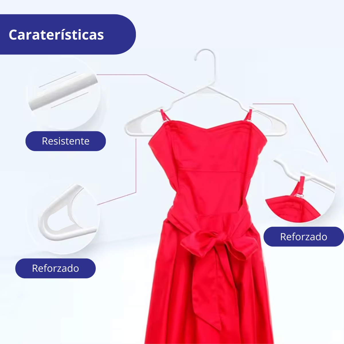 Gracias a su calibre robusto, puedes colgar toda la ropa sin preocuparte por deformaciones, asegurando que cada prenda permanezca en perfecto estado. Su diseño ergonómico se adaptará perfectamente a la silueta de sus prendas sin deformarlas, además de contar con múltples elementos funcionales como lo son sus ranuras superiores y sus ganchos internos para asegurar los tirantes de cualquier prenda.