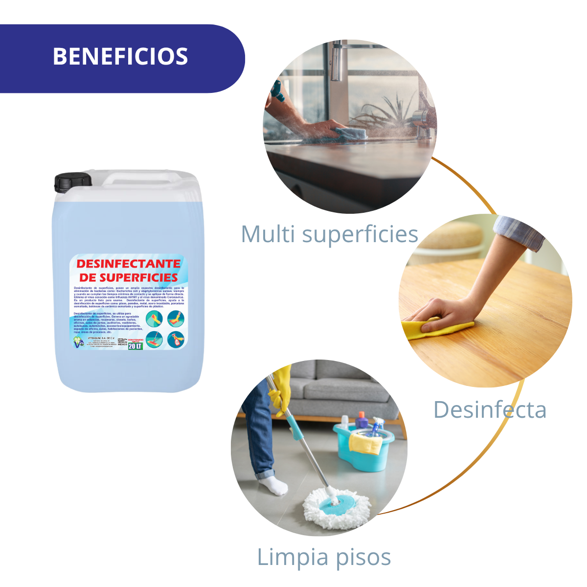 Posee un amplio espectro desinfectante para la eliminación de bacterias como: Escherichia coli y staphylococcus aureus, siempre y cuando se cumplan los tiempos mínimos de contacto y se aplique de forma directa. Elimina virus.