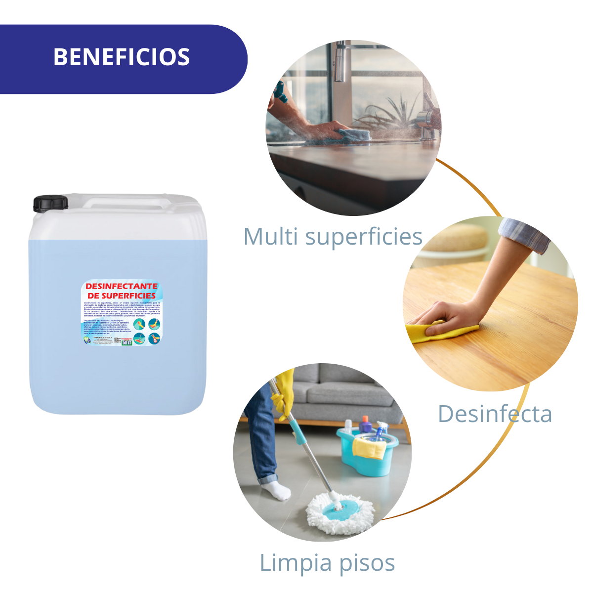 Posee un amplio espectro desinfectante para la eliminación de bacterias como: Escherichia coli y staphylococcus aureus, siempre y cuando se cumplan los tiempos mínimos de contacto y se aplique de forma directa. Elimina virus.