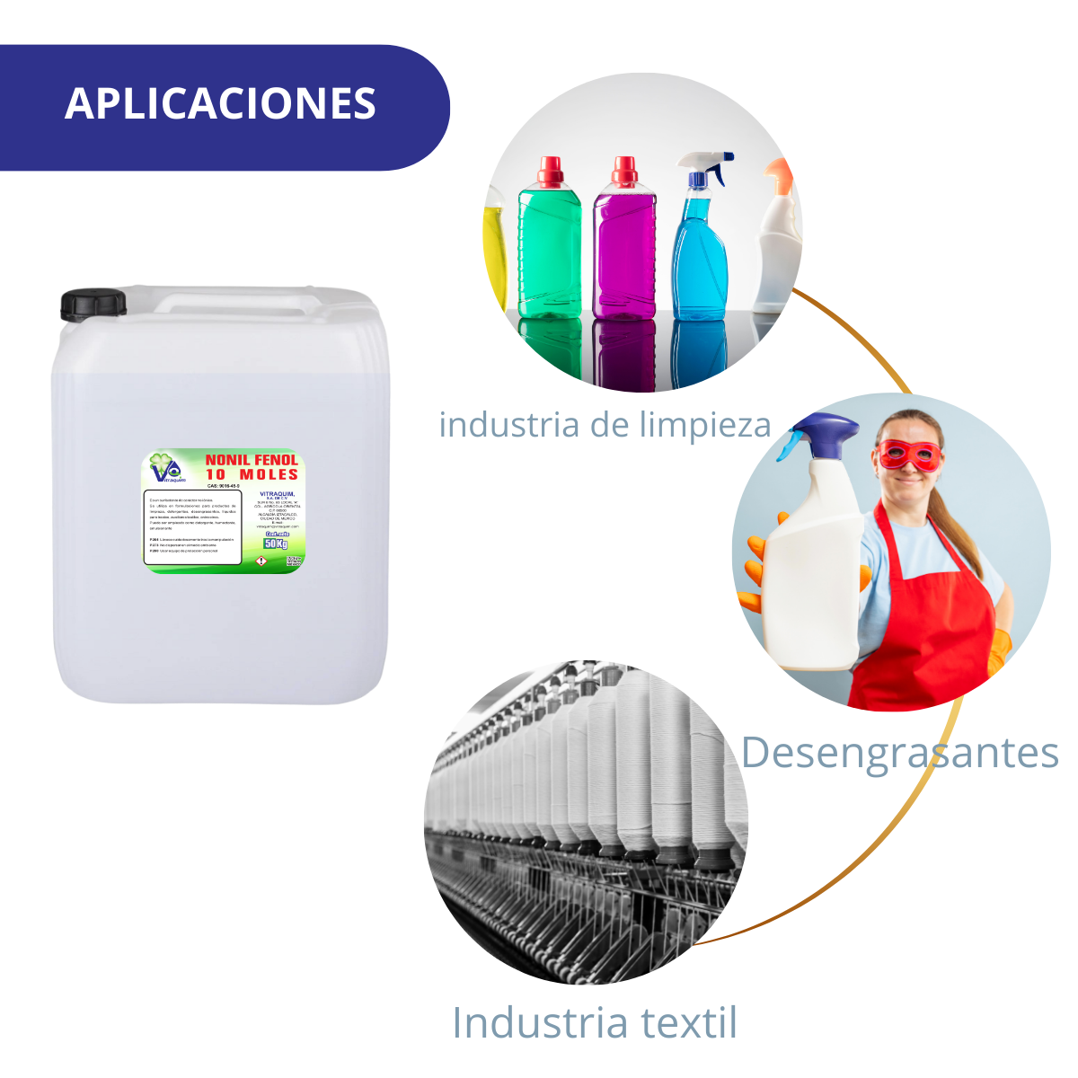 Se utiliza en formulaciones para productos de limpieza, detergentes, desengrasantes, líquidos para trastes, auxiliares textiles, entre otros.