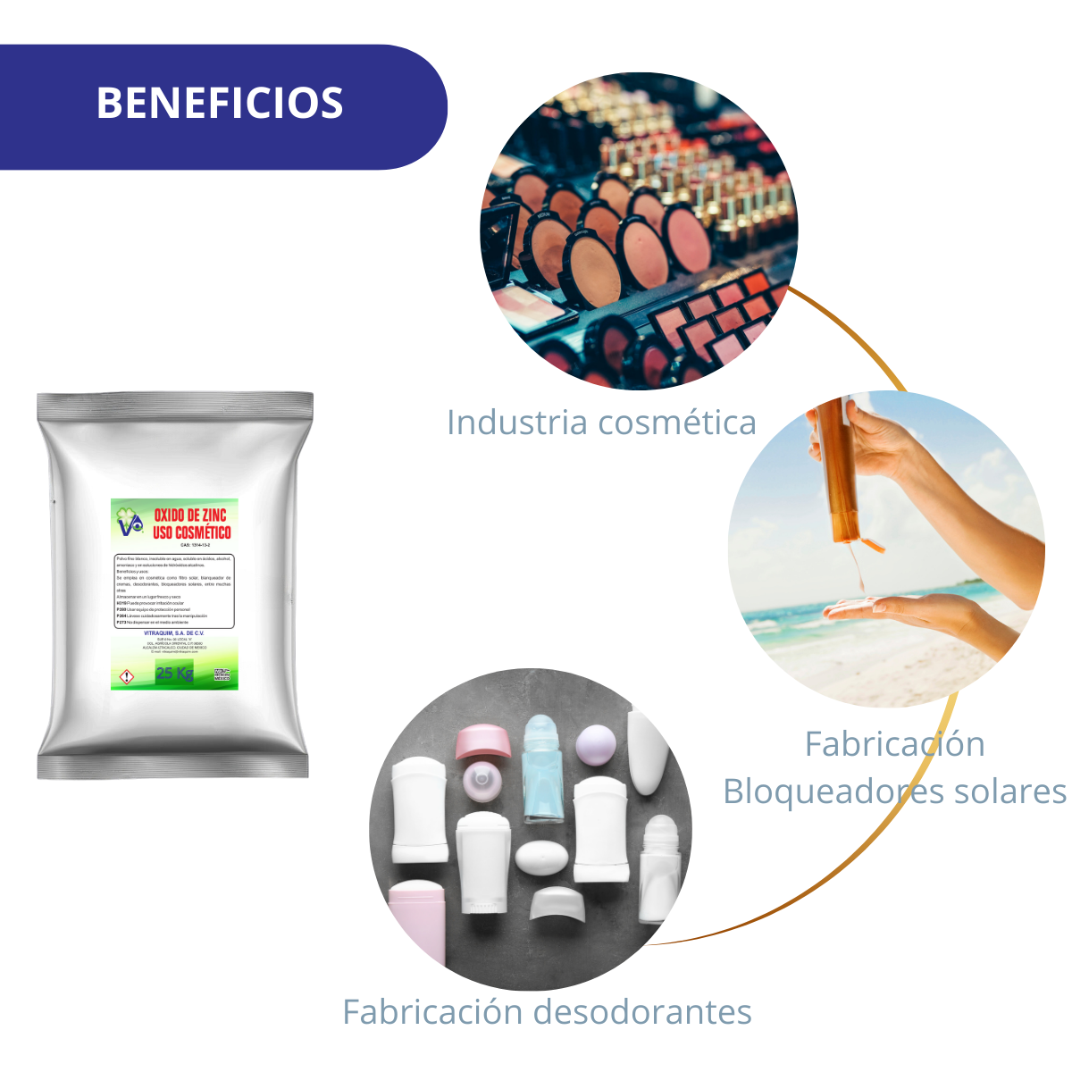 Se emplea en cosmética como filtro solar, blanqueador de cremas, desodorantes, bloqueadores solares, entre muchas otras