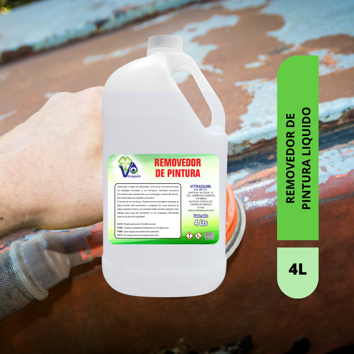 Fabricado a base de solventes, sirve para remover pinturas en metales ferrosos y no ferrosos, también remueve incrustaciones y productos que contengan resinas de silicón. Remueve pinturas liquida y en polvo.