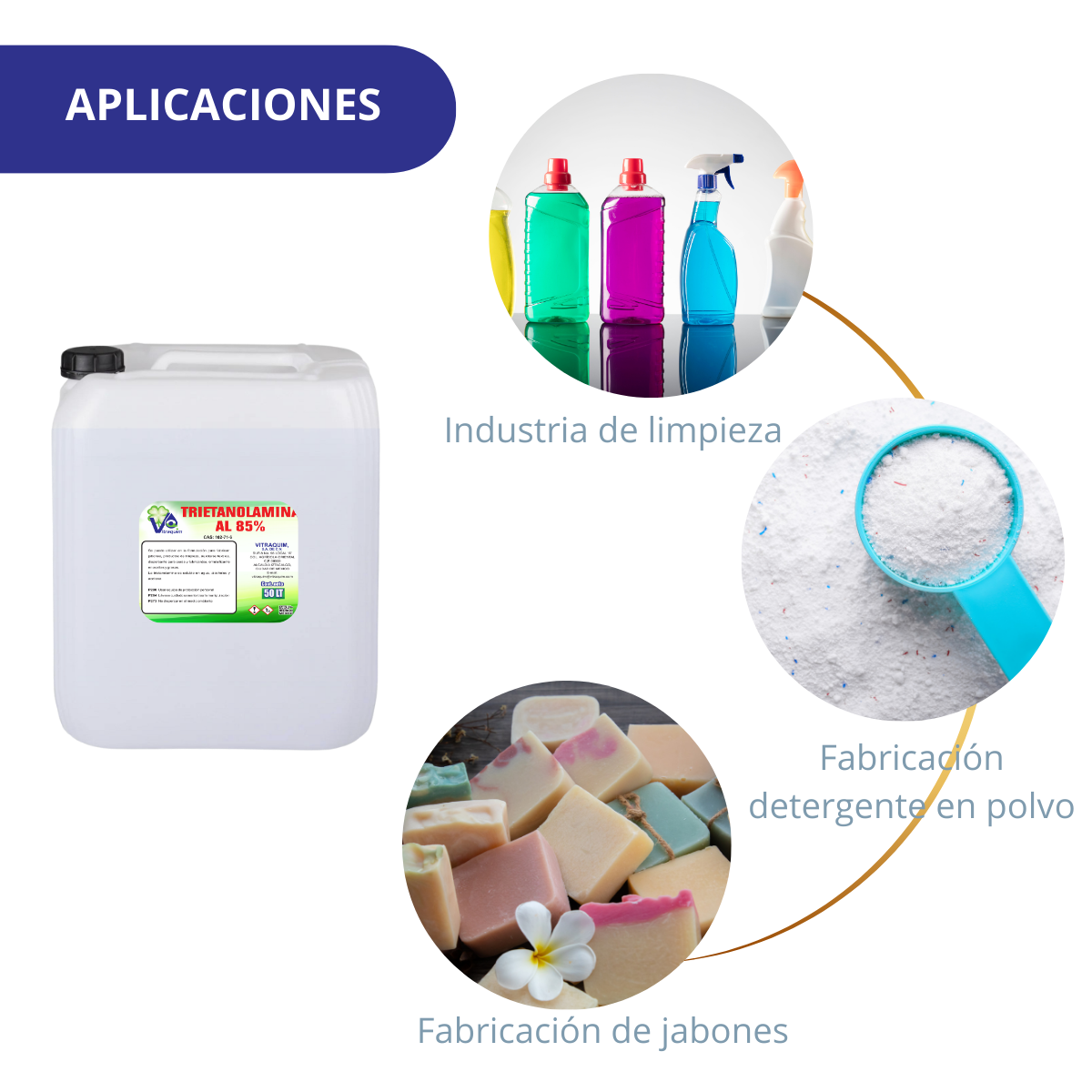 Se puede utilizar en la formulación para fabricar: jabones, productos de limpieza, auxiliares textiles, dispersante para ceras y lubricantes, emulsificante en aceites y grasas