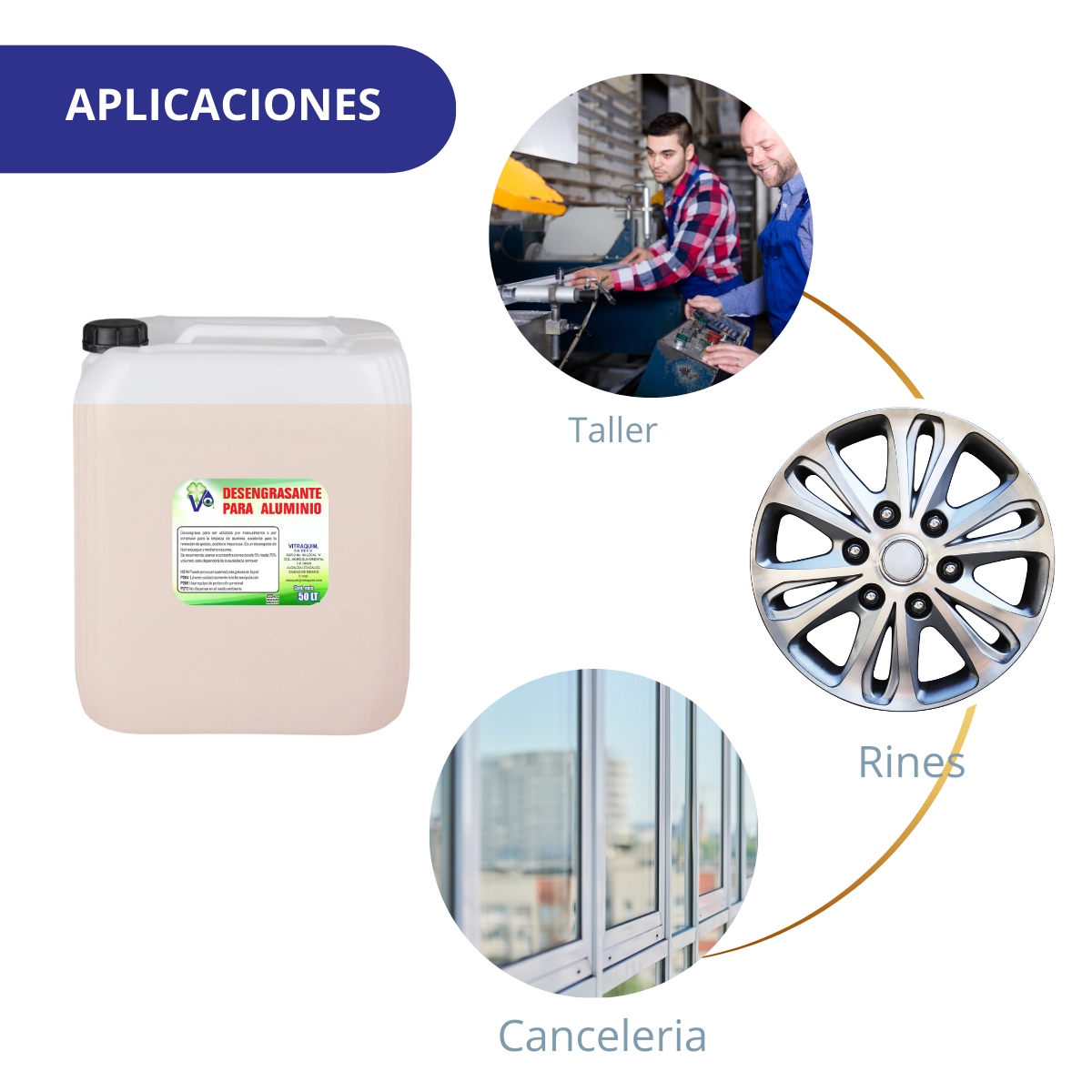 Desengrase para ser utilizado por manualmente o por inmersión para la limpieza de aluminio, excelente para la remoción de grasas, aceites e impurezas. Es un desengrase de fácil enjuague y mediana espuma.